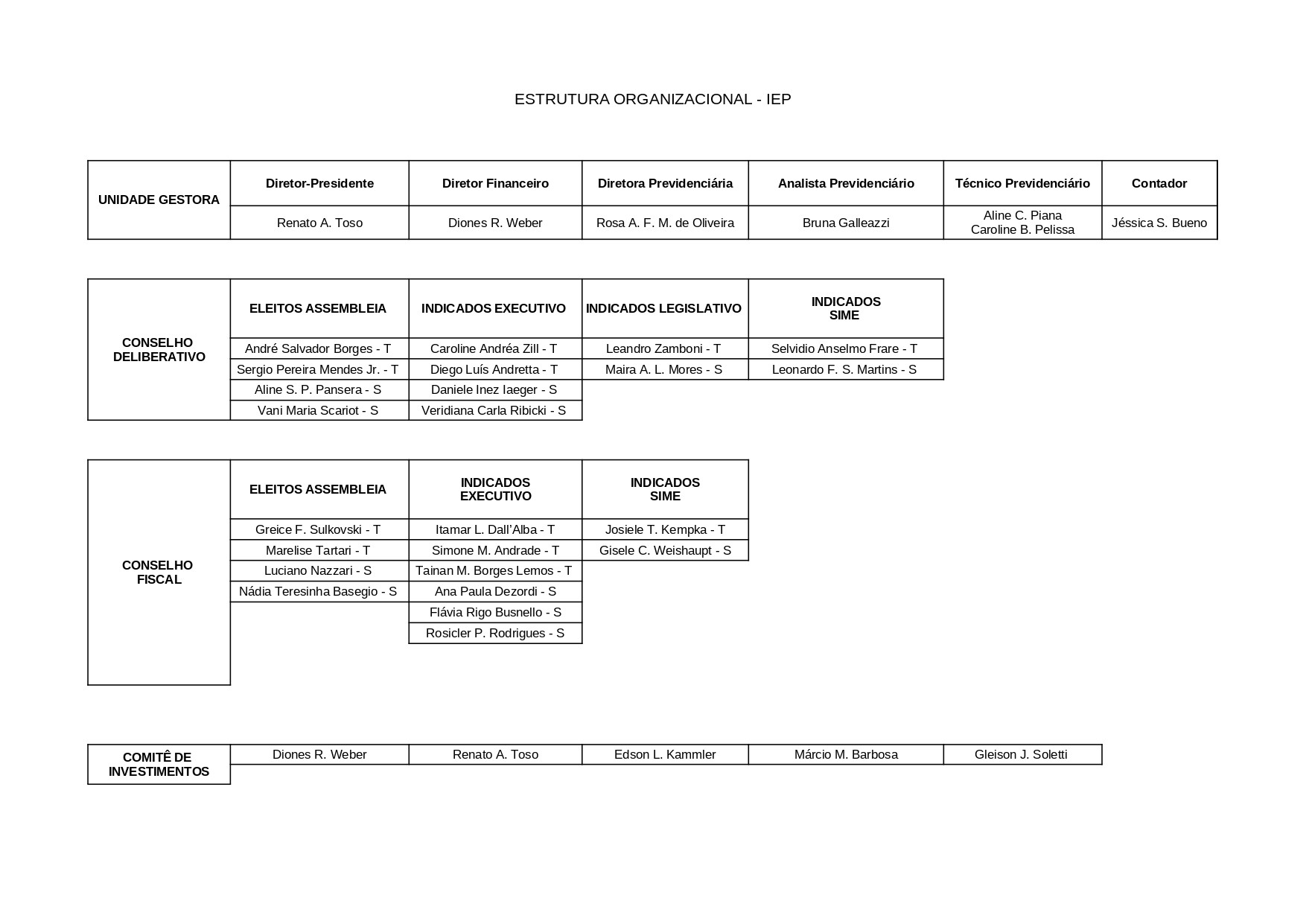 A administração do Intituto Erechinense de Previdência - IEP é composta pelos seguintes orgãos: